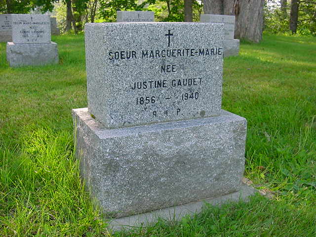 Soeur Marguerite Marie était native de St-Joseph et fille de feu Thaddée Gaudet; deux frères, Lucien et Damien, lui survivent. M. Napoléon Landry, curé de Ste-Marie, N.-B., est un neveu et la Révérende Soeur Marie-Anita, supérieure du pensionnat de Notre-Dame du Sacré-Coeur, de St-Joseph, est une nièce.