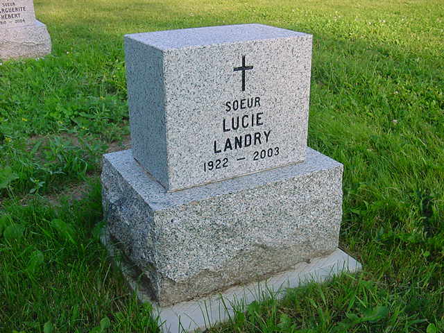À l'Hôpital régional Dr-Georges-L.-Dumont de Moncton, le samedi 10 mai 2003, à l'âge de 80 ans, est décédée Soeur Lucie Landry, n.d.s.c. (Sr Marie-Jean-Paul), domiciliée à Moncton, Maison-mère des Religieuses Notre-Dame-du-Sacré-Coeur.