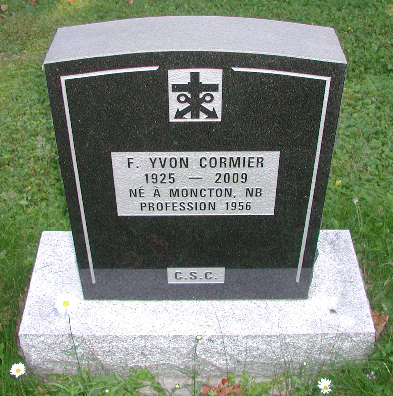 Est décédé le dimanche 27 septembre au Foyer Notre-Dame du Sacré-Cœur, Dieppe (N.-B.), le frère Yvon Cormier, C.S.C. Né à Moncton de feus Tilmon Cormier et Sara Cormier le 6 septembre 1925, il est entré au Monastère des Trappistes de Rogersville le 19 septembre 1943.