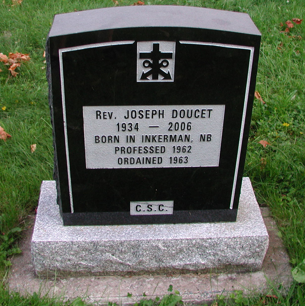 The English Canadian Province of Holy Cross announces with sadness the death of their confrère, Father Joseph Marie Doucet, CSC on May 4, 2006 in the Welland (Ontario) Hospital after a lengthy struggle with Cancer. Born in Inkerman, New Brunswick on April 30, 1934, he was the son of the late Joseph and Celia Nardini Doucet.