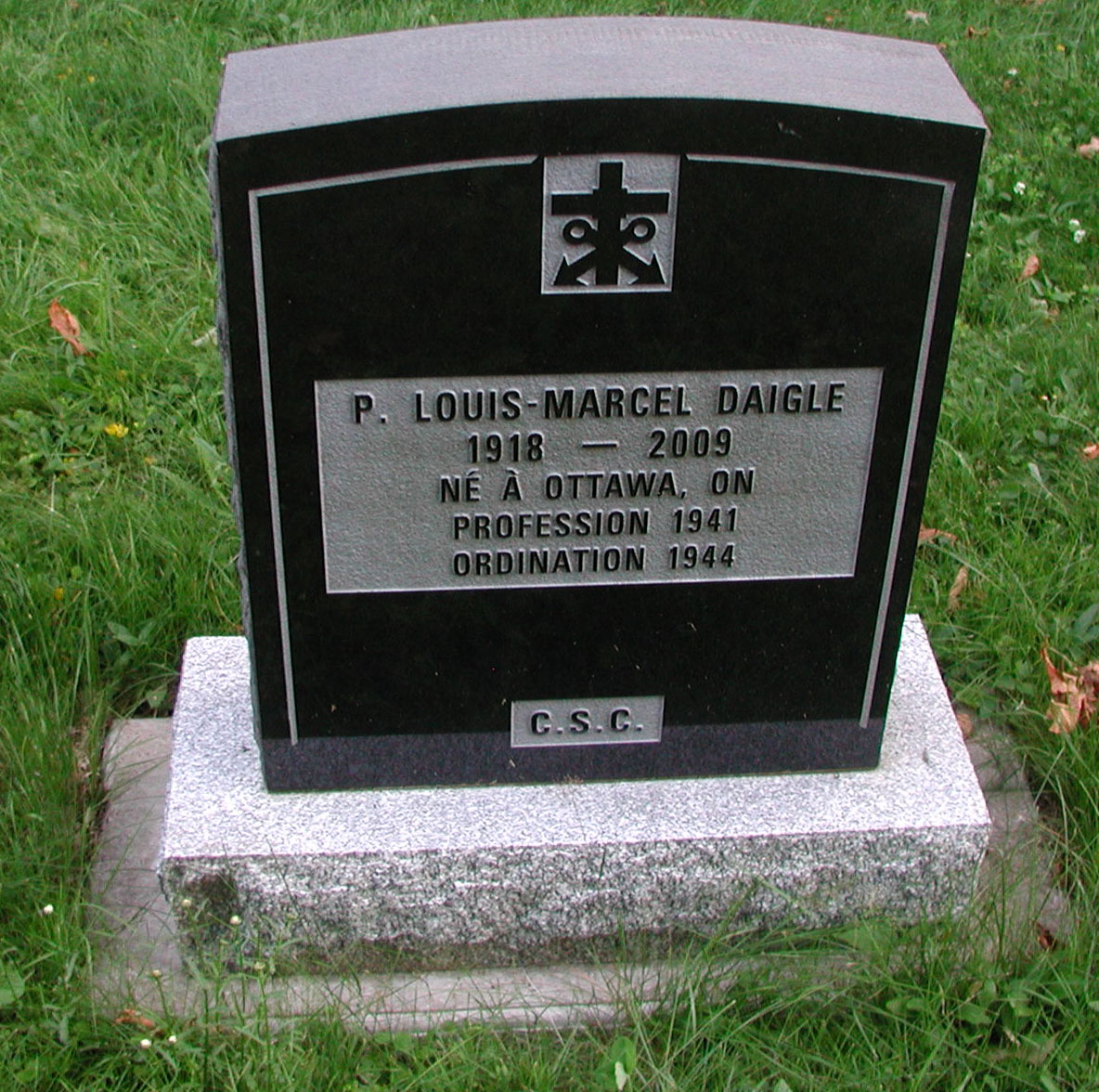 À Moncton (N.-B.), le jeudi 21 mai 2009, est décédé père Louis-Marcel Daigle, prêtre de la Congrégation de Sainte-Croix. Né à Ottawa, Ontario le 24 avril 1918, il était fils d'Auguste Daigle et de Julie Léger.