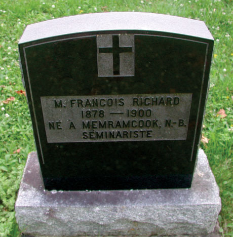 Une messe solennelle de requiem fut exécutée par le choeur du collège sous la direction du Révd Père H. LeBlanc. Le Révd Père Roy officiait assisté du Révd Père Tessier comme diacre, et de M. F. Cormier, ecclésiastique, comme sous-diacre. Le service terminé, on se rendit au cimetière. Le cercueil était porté par six ecclésiastiques ducollège. Avant de mettre la bière dans la fosse, il fut donné aux parents at aux amis de défunt de voir pour la dernière fois les traits de celui qu’ils avaient tant aimé. La mort de M. François Richard semble avoir plongé toute la paroisse de Memramcook dans un deuil profond. Connu et estimé de tous, on pouvait s’attendre à le voir occuper une place importante dans le clergé acadien. Mais Dieu dont les desseins sont impénétrables a voulu rappeler de la terre cette belle âme et en faire un ange de plus au ciel.