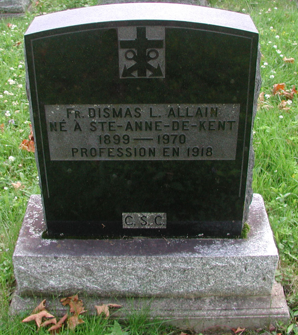 Né à Bouctouche, il était le fils de feu Pierre Allain et de Madeleine Melanson. Il laisse dans le deuil : quatre soeurs : Mme Calixte Allain (Yvonne), Mme Angus Renault (Aurore), Mme Edouard Provincial (Julie), toutes trois de New Bedford, et Mme Ovila Parent (Evangéline) de Fall River, Mass. Trois frères : Arthur et Anselme de Bouctouche, et Dismas de Tempeltex, P.Q.