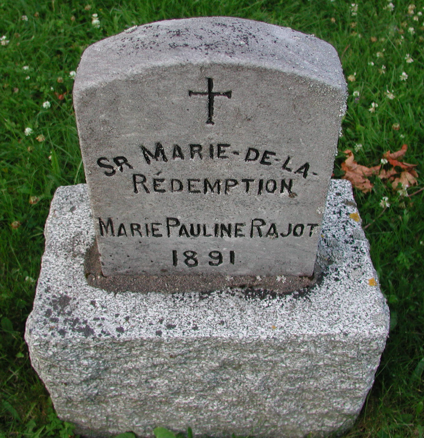 Le vingt six septembre mil huit cent quatre vingt onze, nous prêtre soussigné avons inhumé dans le cimetière de la communauté des Pères de Ste Croix, le corps d’Appolonie Rajeau, en religion Soeur Marie de la Rédemption, marianite de Ste Croix, âgée de soixante onze ans, décédée avant hier.