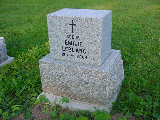 À l'Hôpital Dr-Georges-L.-Dumont de Moncton, le samedi 17 avril 2004, à l'âge de 92 ans, est décédée après une courte maladie, soeur Emilie LeBlanc, n.d.s.c. (Soeur Marie-Léontine), domiciliée à la maison-mère, 125, rue King à Moncton.