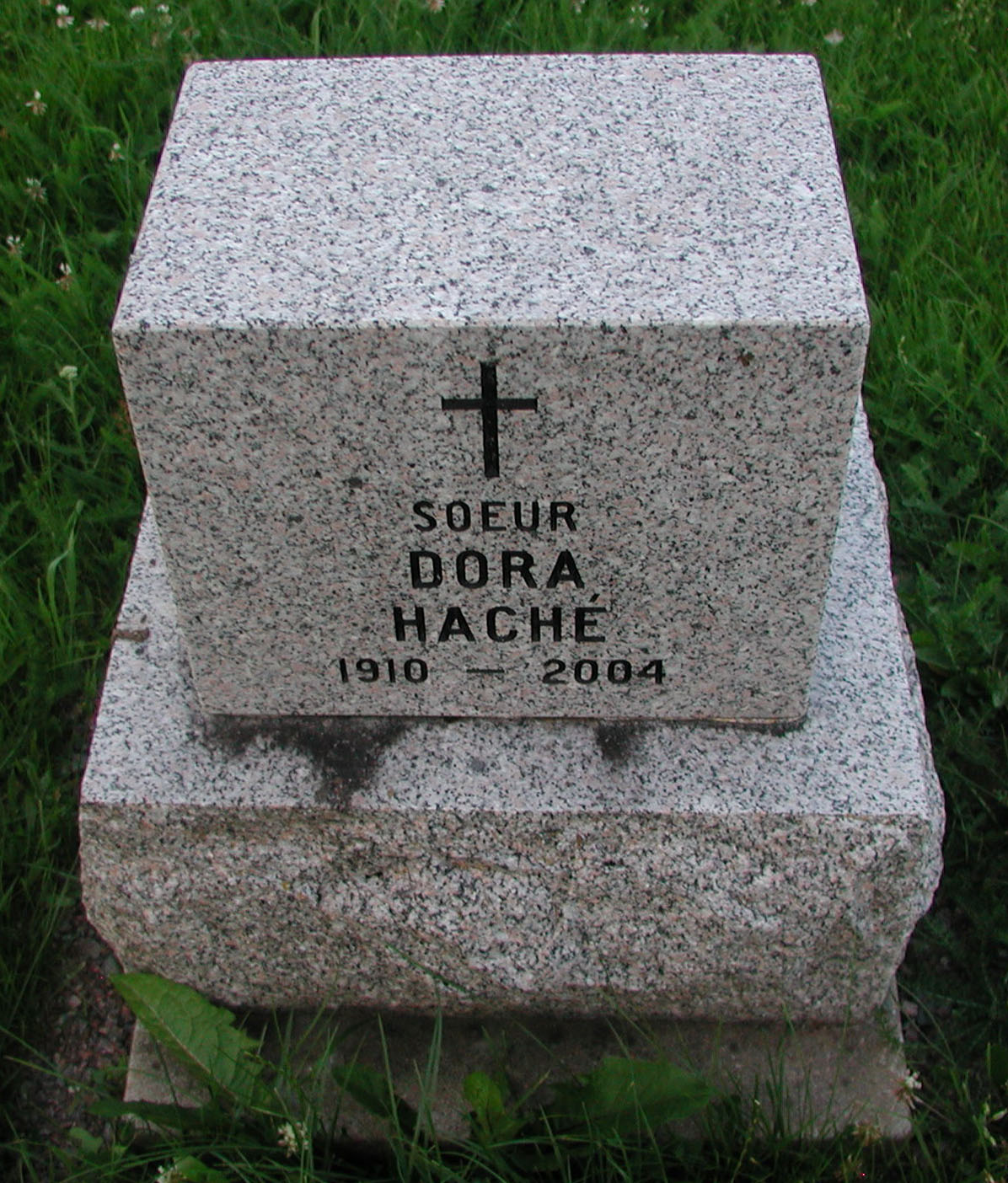 À l'Hôpital régional Dr Georges-L. Dumont de Moncton, le samedi 16 octobre 2004, à l'âge de 94 ans, est décédée Sr Dora Haché, n.d.s.c. (Sr Marie-Cléophas), domiciliée à la maison-mère des Religieuses Notre-Dame-du-Sacré-Coeur de Moncton.
