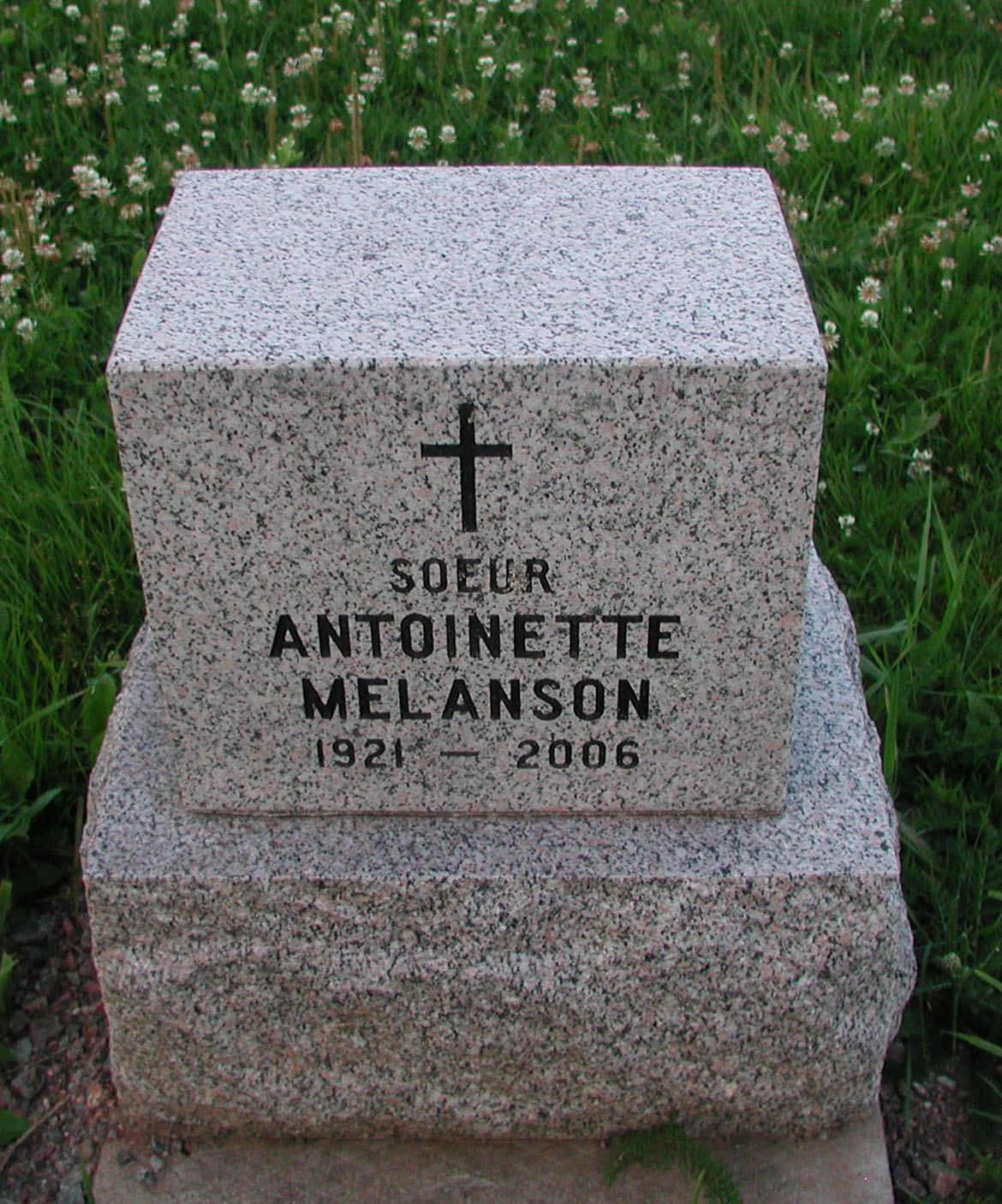 À la Maison-mère des Religieuses N.-D.-du-Sacré-Coeur de Moncton, le vendredi 7 juillet 2006, à l'âge de 84 ans, est décédée Soeur Antoinette Melanson, n.d.s.c. (Marie-de-la- Trinité) domiciliée à la Maison-mère.
