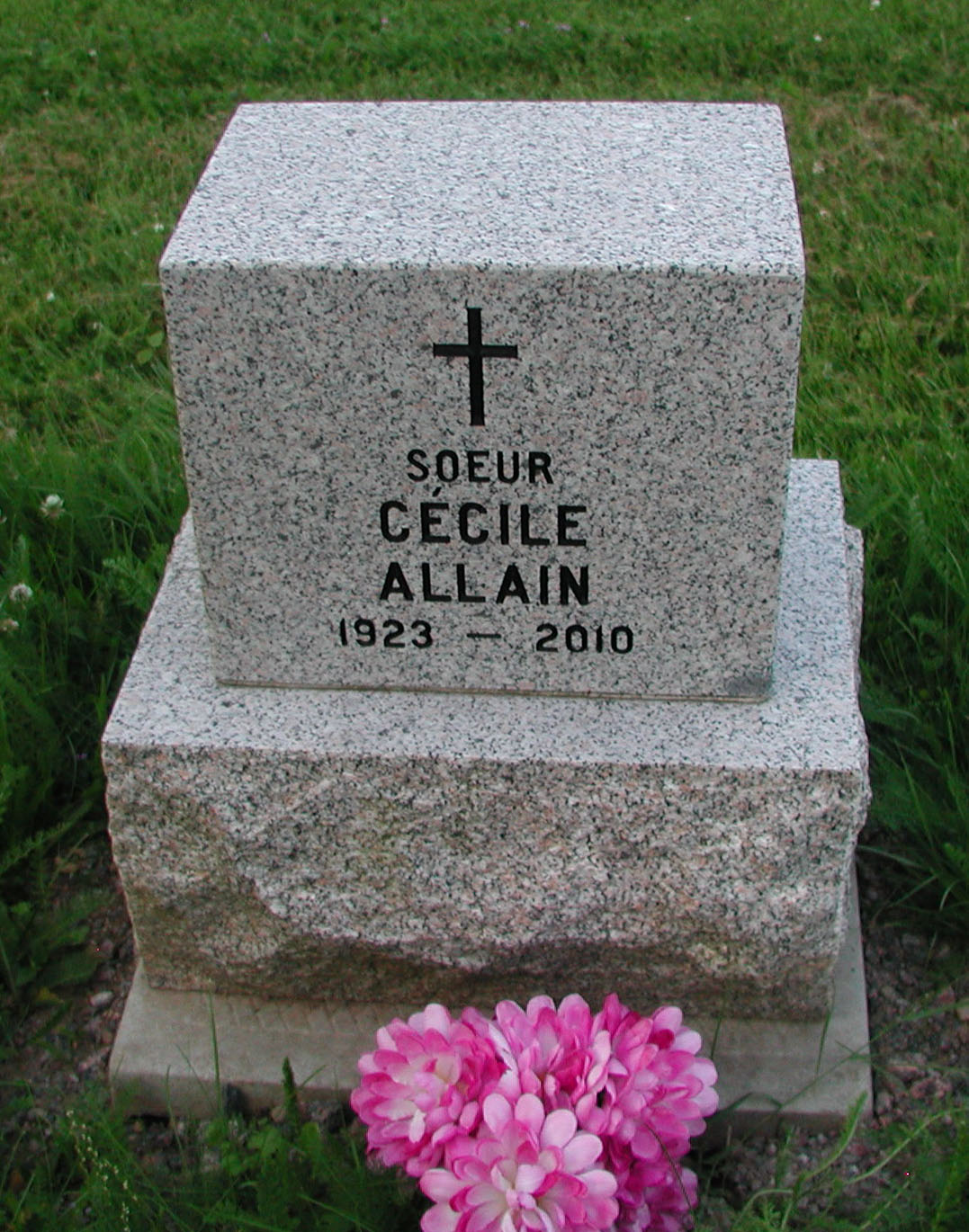 À la Maison-mère des Religieuses Notre-Dame-du-Sacré-Coeur de Moncton, le mercredi 6 janvier 2010, à l'âge de 87 ans, est décédée après une longue maladie Sr Cécile Allain, ndsc (Sr Marie-Louis-Joseph).