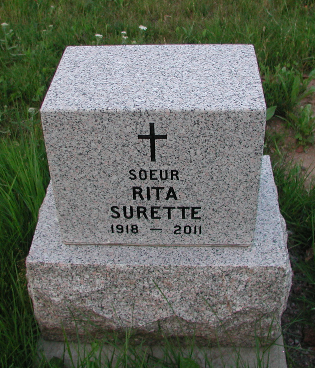 À la Résidence Notre-Dame-du-Sacré-Coeur de Dieppe où elle demeurait, le vendredi 15 avril 2011, à l’âge de 92 ans dont 71 ans de vie religieuse, est décédée Sr Rita Surette (Sr Marie-Noëlla).