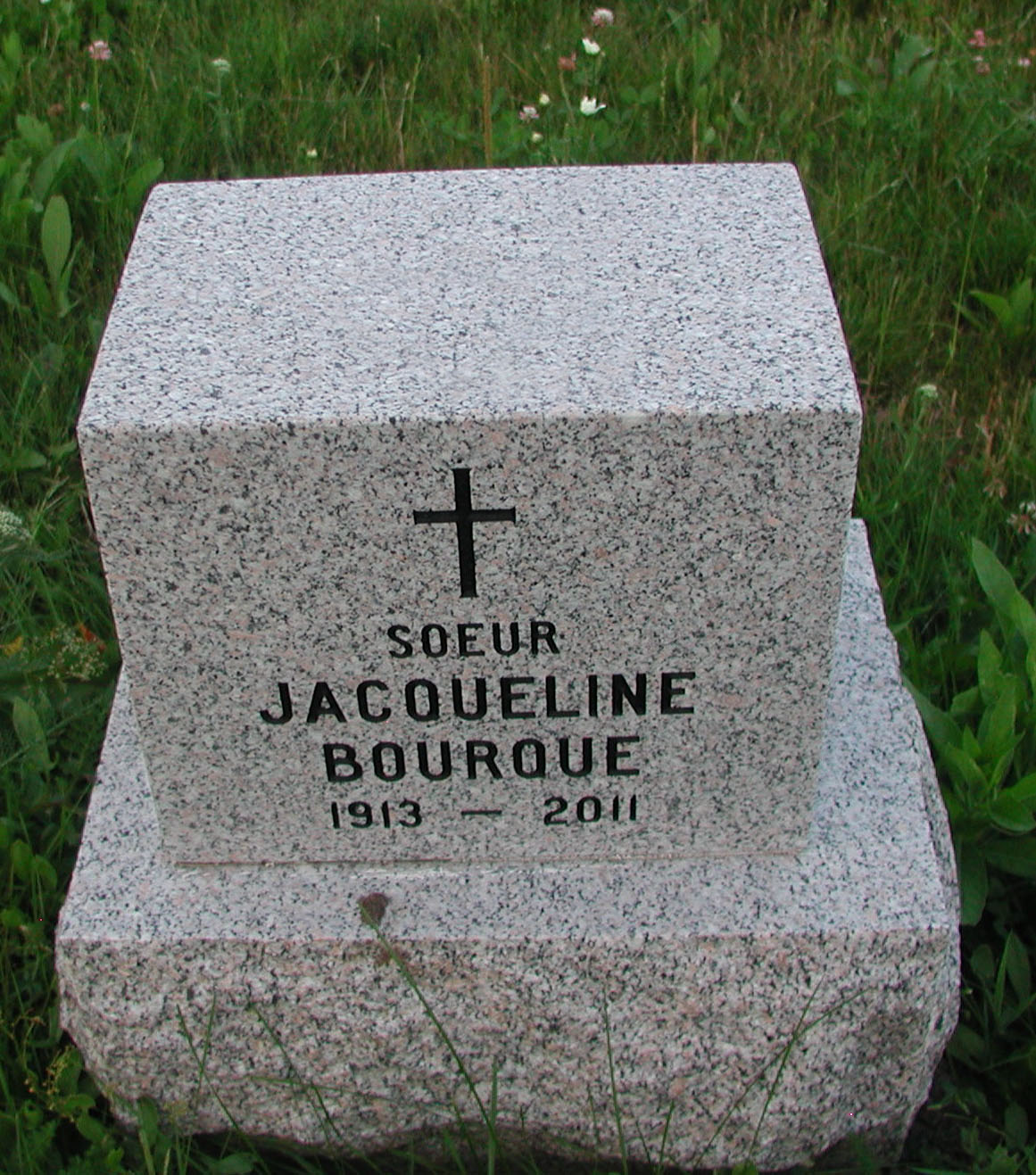 À Notre-Dame-du-Sacré-Coeur de Moncton, le dimanche 10 juillet 2011, à l’âge de 98 ans et après 76 ans de vie religieuse, est décédée Sr Jacqueline Bourque, à la suite d’une longue maladie.