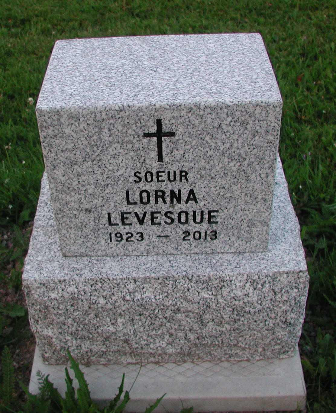 Née le 31 août 1923 à Grand-Sault, elle était la fille de feu Pierre et Cléo (Caron) Levesque. Outre sa famille religieuse, elle laisse dans le deuil trois frères: Ernest, André (Winnie) et Roland (Marilyn); deux belles-soeurs: Eva et Grace, ainsi que ses nièces et ses neveux. Elle fut précédée dans la tombe par trois frères: Colin, Norman et Omer. La dépouille mortelle sera exposée au pavillon Notre-Dame d’Acadie de la maison-mère des Religieuses Notre-Dame-du-Sacré-Cœur, 125, rue King à Moncton (entrée ruelle Godfrey). Les funérailles auront lieu en la chapelle de la Maison-mère, le mardi 27 août 2013 à 10h. L’inhumation se fera à Memramcook. Heures de visites: lundi de 14h à 16h et 19h à 21h, avec Vêpres solennelles à 19h, et mardi dès 9h jusqu’à l’heure des funérailles. La direction des funérailles a été confiée aux soins professionnels de la Maison funéraire Frenette, 88, rue Church, Moncton.