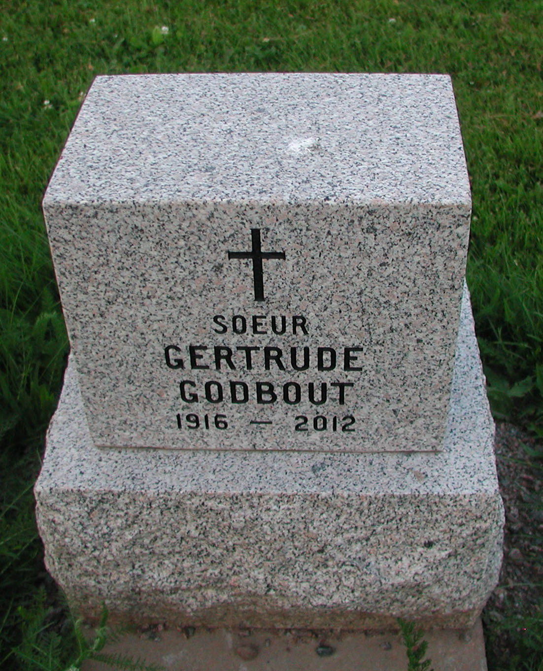 À sa résidence, suite à une longue maladie à la Maison-mère des Religieuses Notre-Dame-du-Sacré-Cœur de Moncton, le jeudi 12 janvier 2012, est décédée Sœur Gertrude Godbout. Elle avait 95 ans dont 78 ans de vie religieuse.