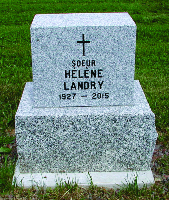À la suite d’une longue maladie, à la Maison-mère des Religieuses Notre-Dame-du-Sacré-Cœur de Moncton, le dimanche 30 août 2015, est décédée Sr Hélène Landry (Patrice-Marie). Elle avait 88 ans, dont 68 de vie religieuse. Née le 2 juin 1927 à Pokemouche, elle était la fille de feu Romain et Hélène (Blanchard) Landry.