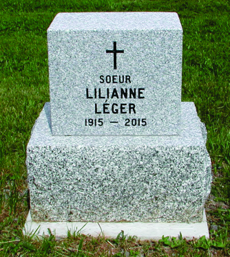 Suite à une longue maladie, à la Maison-mère des Religieuses Notre-Dame-du-Sacré-Cœur de Moncton, le vendredi 14 août 2015, est décédée Sœur Lilianne Léger (Marie-du-Bon-Pasteur).Elle avait 100 ans dont 79 de vie religieuse. Née le 24 mars 1915 à Grande-Digue, NB, elle était la fille de feu Placide Léger et de feu Ursule Cormier.