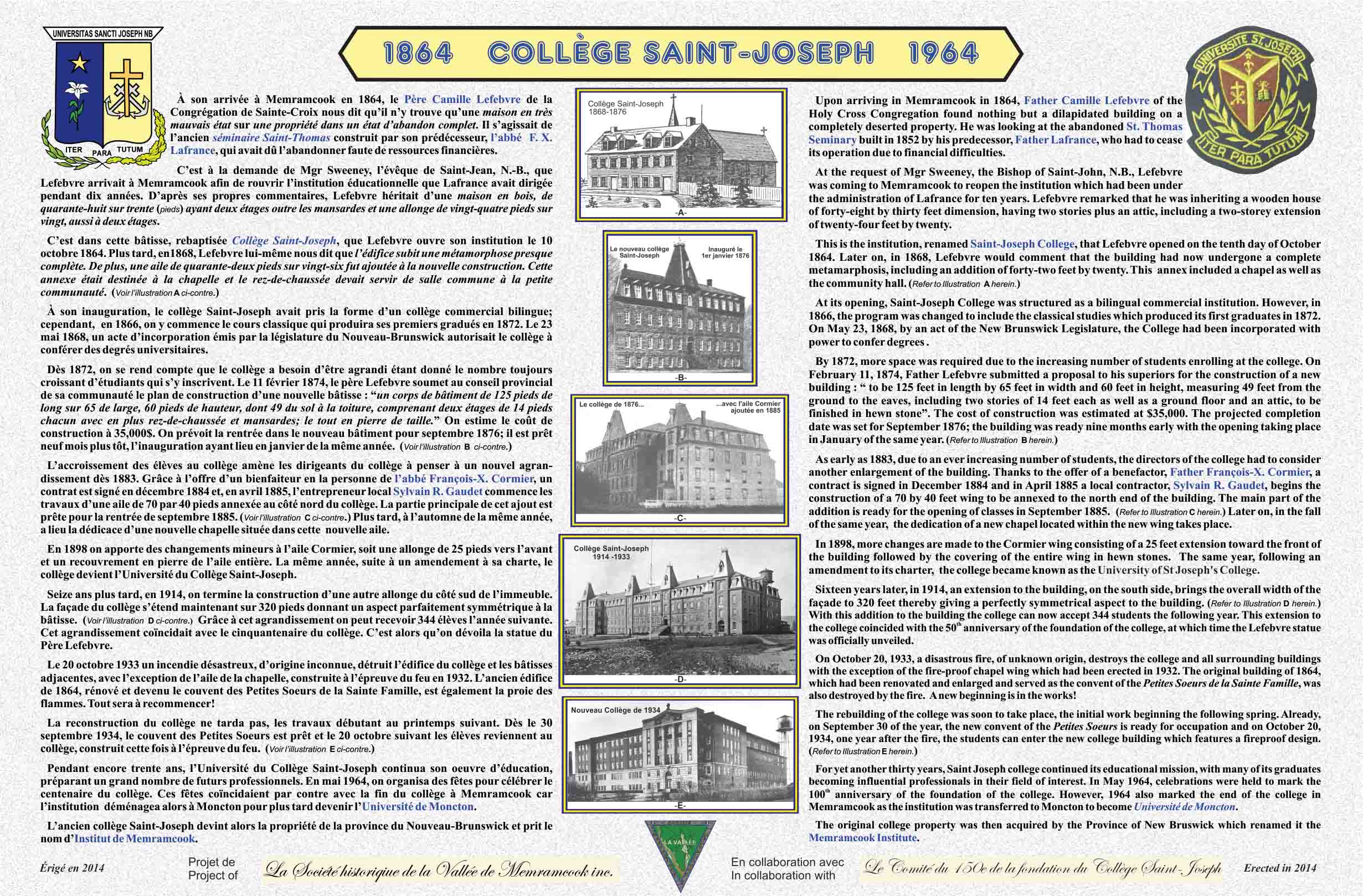 Pendant encore trente ans, l’Université du Collège Saint-Joseph continua son oeuvre d’éducation, préparant un grand nombre de futurs professionnels. En mai 1964, on organisa des fêtes pour célébrer le centenaire du collège. Ces fêtes coïncidaient par contre avec la fin du collège à Memramcook car l’institution déménagea alors à Moncton pour plus tard devenir l’Université de Moncton.