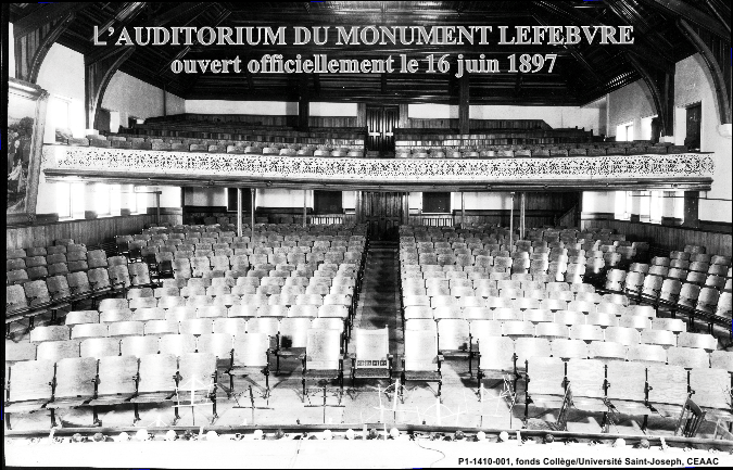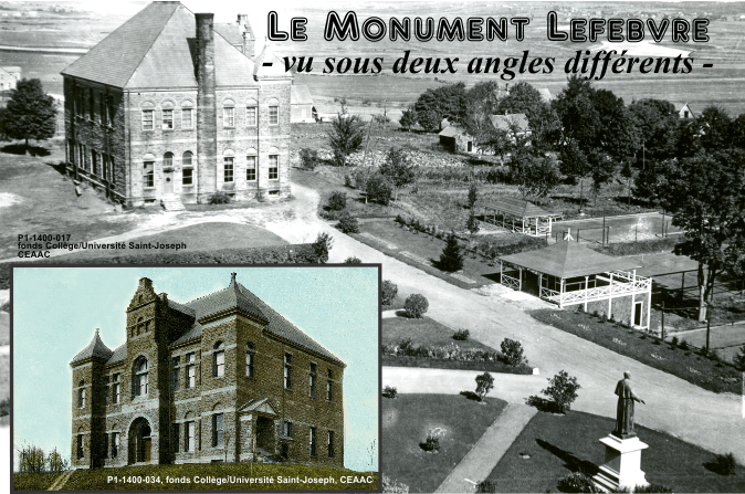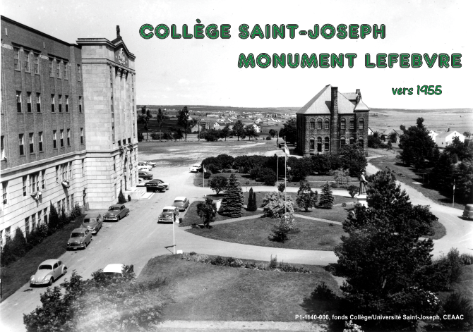 On aperçoit la statue du Père Camille Lefebvre à l'avant-plan.