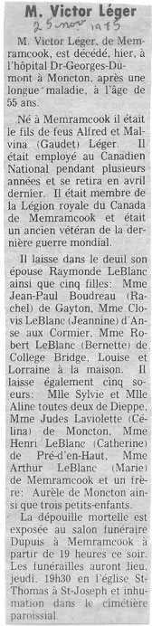 Victor avait épousé Raymonde à Alyre LeBlanc à Memramcook le 23 juillet 1946.